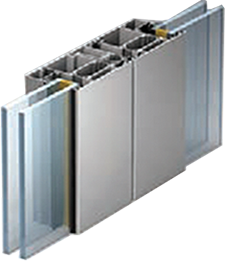 The system is based on combined profiles consisting of two aluminium profiles connected to each other by means of two elements made of glass fiber reinforced polyamide.