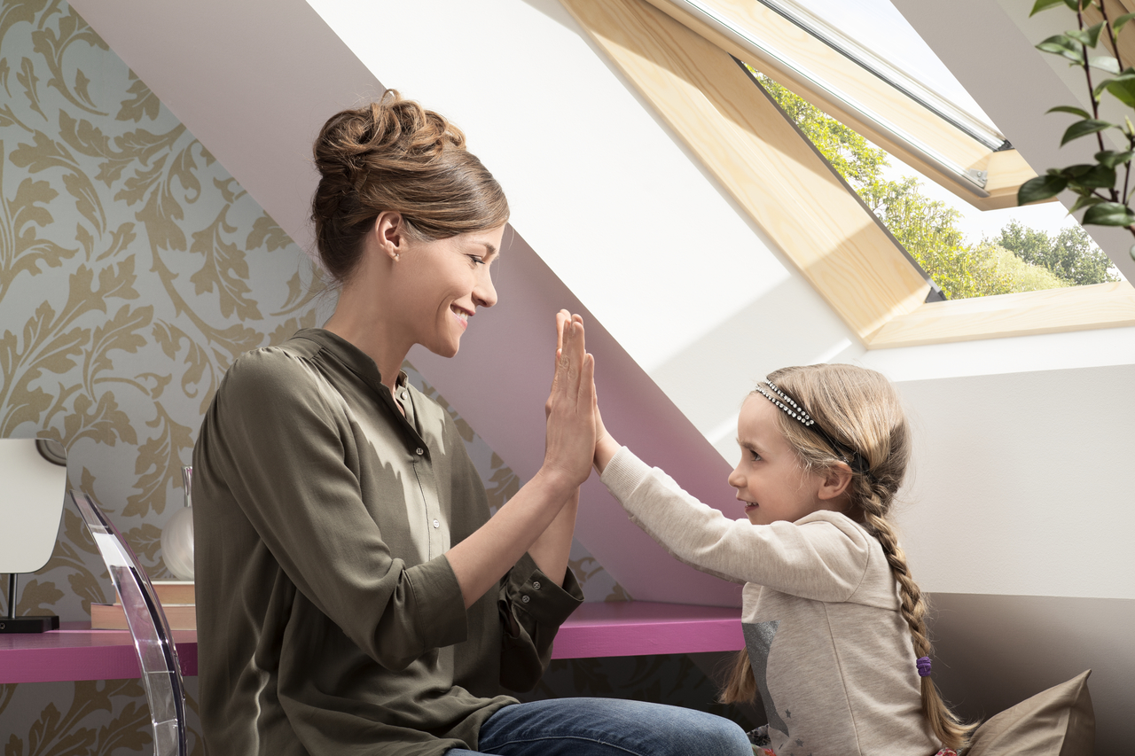 Благодаря уникальной верхней ручке в сочетании с клапаном для проветривания под мансардным окном удобно расположить мебель или обустроить зону отдыха.